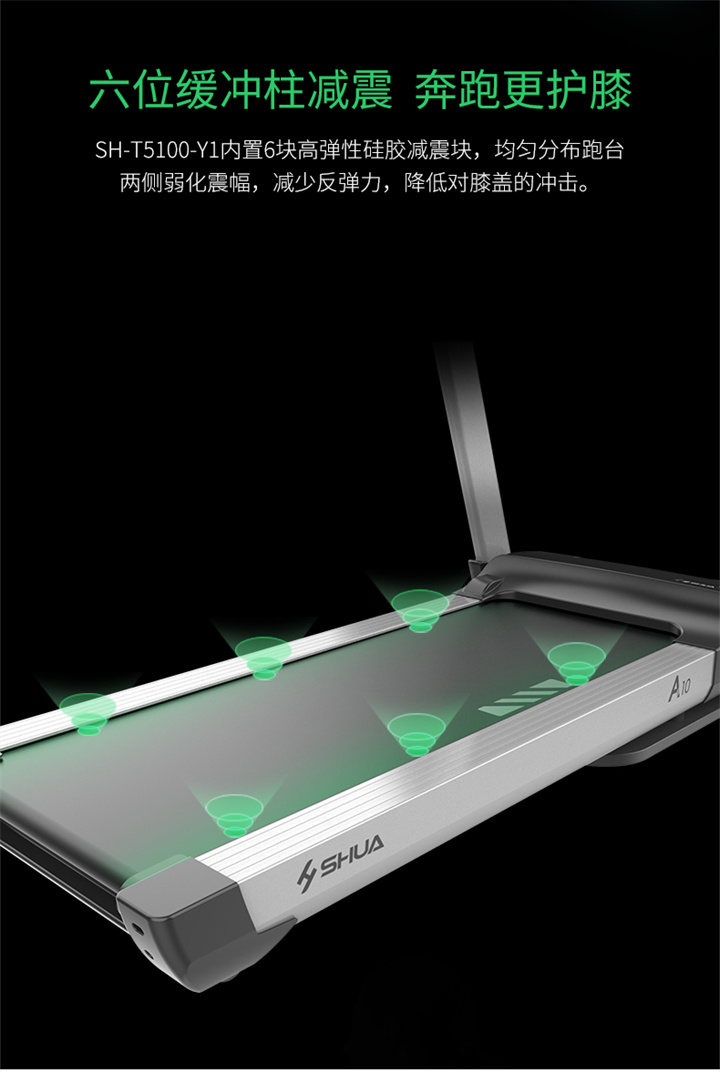 • 产品简介:舒华家用跑步机SH-T5100持续马力达1.25HP,具有500×1350mm的跑台,运用无线心率接收模块监测心率,运用6位硅胶减震设计,最大承重是126kg,可以满足大多数家庭的使用。