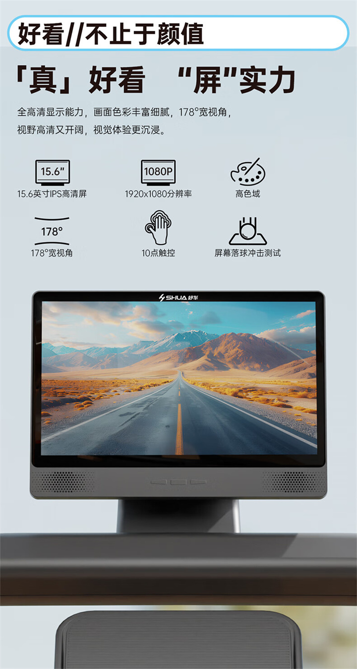 币游·国际推荐健身器材-舒华商用电动跑步机SH-T6500拥有10.1寸IPS高清触摸屏、Z型动感时尚外观设计、70×150mm精钢立柱机身、F级高效静音马达、520mm商用豪华跑带和35mm双层全跑台减震跑板等优势,让您享受科学跑步。